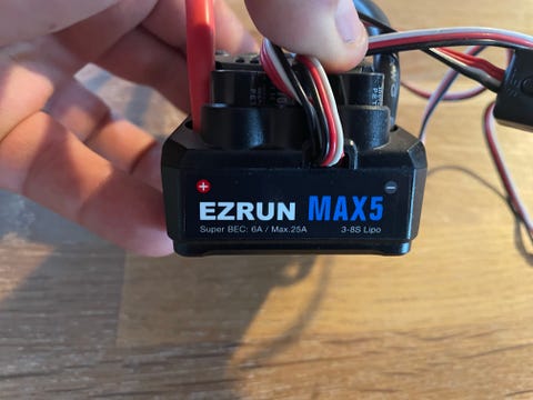De mange hestekræfter gør også, at motoren, som er en 50 kubik Polini, kan få båden op i ret høj fart. Du kan på stille vand få power boaten til at sejle op mod 90 kilometer i timen, så det er altså med at have godt fat i controlleren.