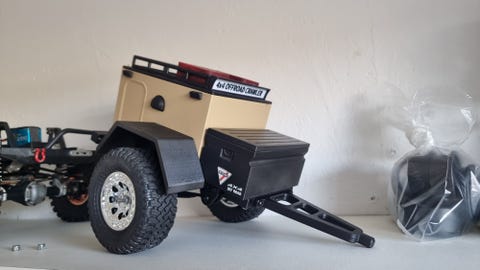 Med i prisen på den fjernstyrede båd får du også et cover og en specialfremstillet trailer til at transportere den.