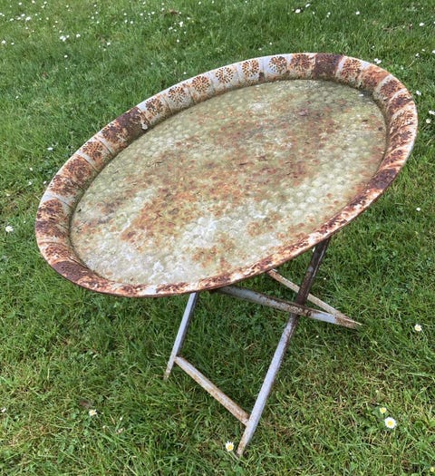 Bordet på altanen er et modificeret klap-havebord købt på DBA. Michael har taget benene af og lavet en skinne ud af en altankasseholder, så bordet sidder på gelænderet. Det frigiver plads på den ellers lille altan.