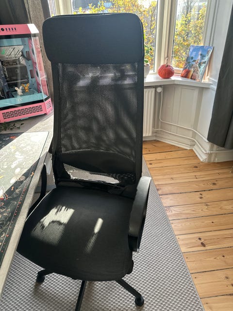 Har du også en ødelagt stol derhjemme, som du ikke nænner at skille dig af med, så kig med her: I denne guide kan du få inspiration til at finde en ny måde hvorpå din stol igen kan blive et hit - ved at bruge en anden ødelagt stol. En ødelagt kontorstol, men hvor understellet virker.