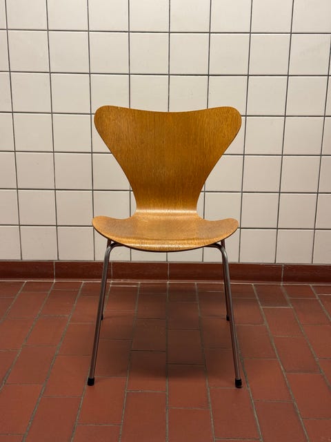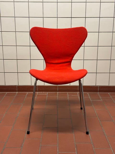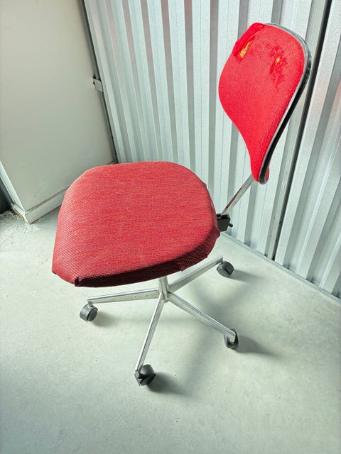 I videoen ovenfor viser jeg, hvordan jeg har mixet min ødelagte Arne Jacobsen-stol til en funktionel kontorstol ved at finde en gammel kontorstol i storskrald.