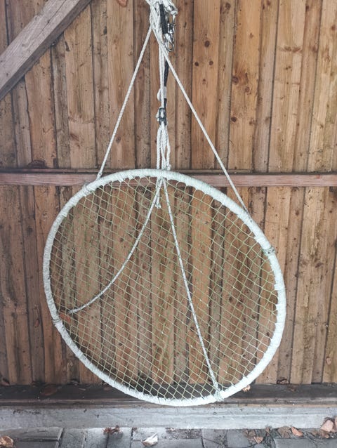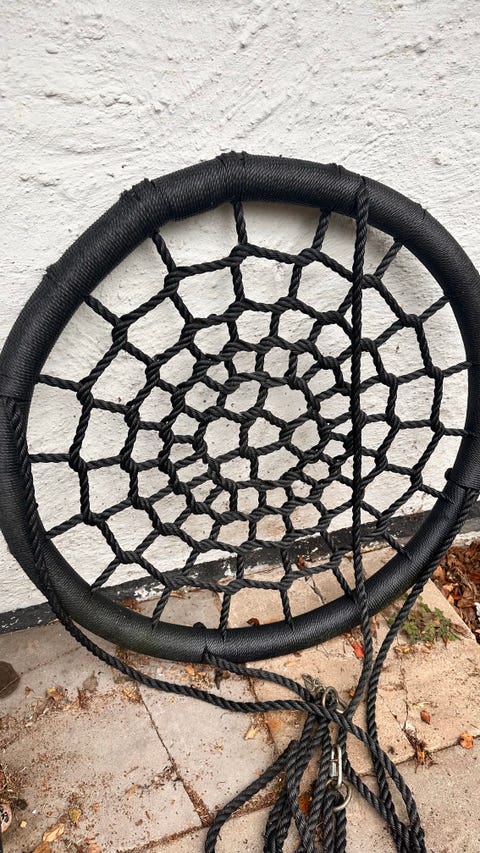 Desuden fandt vi en sansegynge. Det er også et hit hos de fleste unger. I alle aldre, faktisk. Det er super godt for de små’s motorik at blive gynget i sådan en. Vi fandt gyngen til 350 kroner, og det var inklusiv den finde pude.