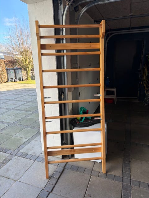 Da Kenneth og Lenette er meget aktive og elsker at dyrke motion, er det helt oplagt at få implementeret det i børneværelset. Vi gik i gang med søgningen, og på DBA fandt vi en rigtig sej oldschool ribbe. Den er helt perfekt til alle størrelser. Når baby begynder at rejse sig op, er det et godt træningsspot. Den er også rigtig sjov for lidt ældre børn, så det er bestemt en ting, der kan følge med, når barnet bliver større.