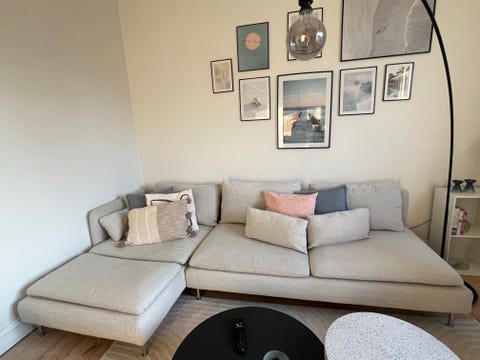 ’Sofa’ er den ting, allerflest søger efter på DBA, og Frederikke kan også skrive sig ind i den statistik. Hendes lyserøde veloursofa er købt brugt for 1.300 kroner, og selvom hun har sparet mange tusind kroner ved at finde den brugt frem for ny, er kæresten ikke helt tilfreds med det bløde møbel.