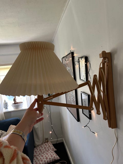 Lampen er et ”glimrende” eksempel på, at du kan finde billige skatte på brugtmarkedet, hvis du blot er god til at spotte en ”usleben diamant”. Lampen gav Frederikke nemlig kun 200 kroner, men så krævede den også en ordentlig vask og en pænere ledning. Hun klarede selv turen med kluden, mens Frederikkes lillebror var behjælpelig med elektronikken.