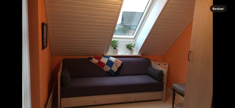 Saras høje seng er heller ikke købt i en forretning. Den har hun bygget sammen med sin far. De har designet den, så der er plads til masser af opbevaring under, der skjules af sengetæppet, som også er købt brugt.
