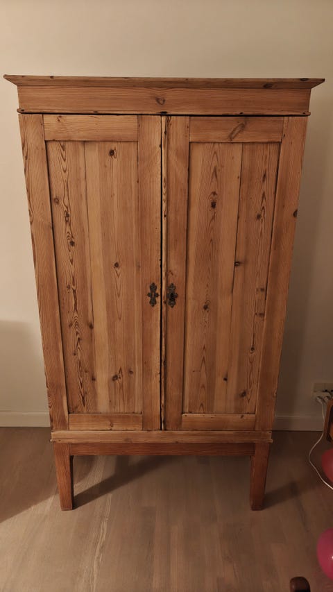 Skabet står i hendes spisestue, men passer perfekt ind i familiens nye hjem, hvor der ikke er højt til loftet.