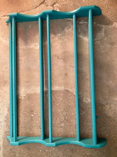 Også vasketøjskurven ude på badeværelset er fundet til storskrald. Skrivebordet i kontoret var dog ikke efterladt til storskrald, men det fik Isabella alligevel scoret sig gratis af en flink sælger, og i dag har hun malet den originale mørkegrønne farve over med blå.