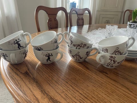 - Jeg kan bedst lide at dække bordet med ens tallerkener. Det kan jeg også, hvis vi kun er tre til middag. Men er vi mere end det, må jeg diske op med forskellige tallerkener. Jeg kan dog godt lide, at det hele passer sammen, så jeg forsøger i det mindste at matche servicen i farverne, fortæller hun.