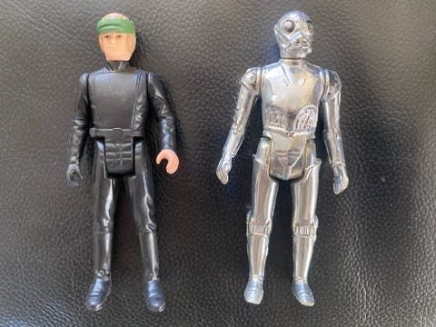 Begge Luke Skywalker-figurer gav han dengang 30 kroner for. Dog er det kun figuren med den medfølgende stormtrooper-hjelm, der ifølge Jacob Houmøller kan indbringe de 1.000 kroner.