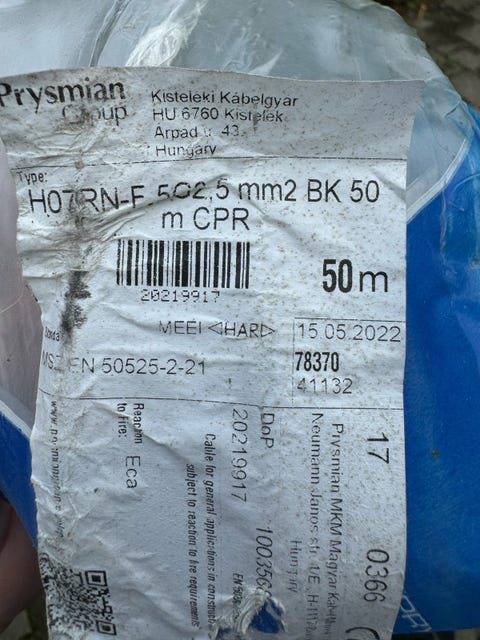 Gummikabel, Prysmian, 38 m.