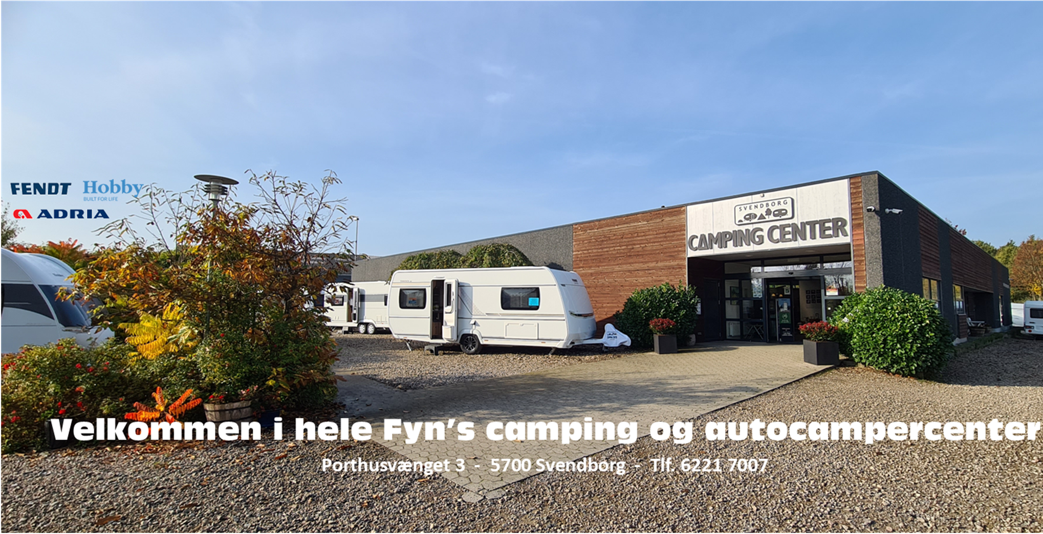 Velkommen i Fyn's hyggeligste campingcenter med Danmarks stærkeste caravan program fra Hobby og Adria samt Hobby og Benimar autocampere. Flot udvalg af pæne brugte campingvogne og autocampere. Vores store moderne værksted tilbyder alle former for service, reparationer og forsikringsskader, af alle vognmærker.