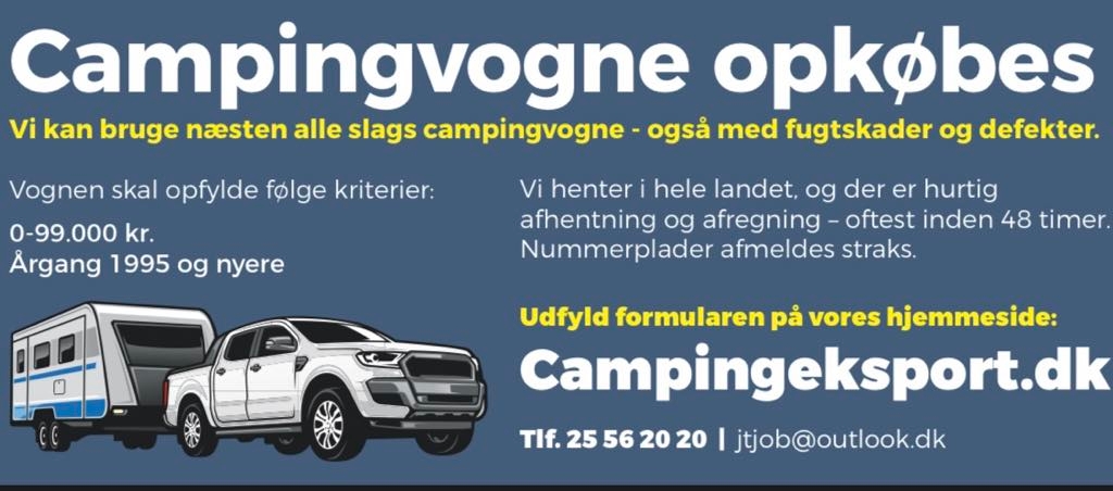 Vi henter i hele landet, også gerne Fyn og Sjælland, og vi tager gerne campingvogne der har stået længe.