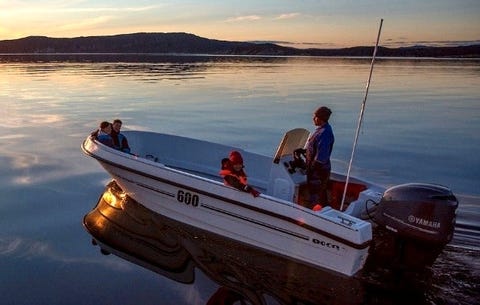 20. jan.Glasfiber jolle med styrepult og firetaktsmotor