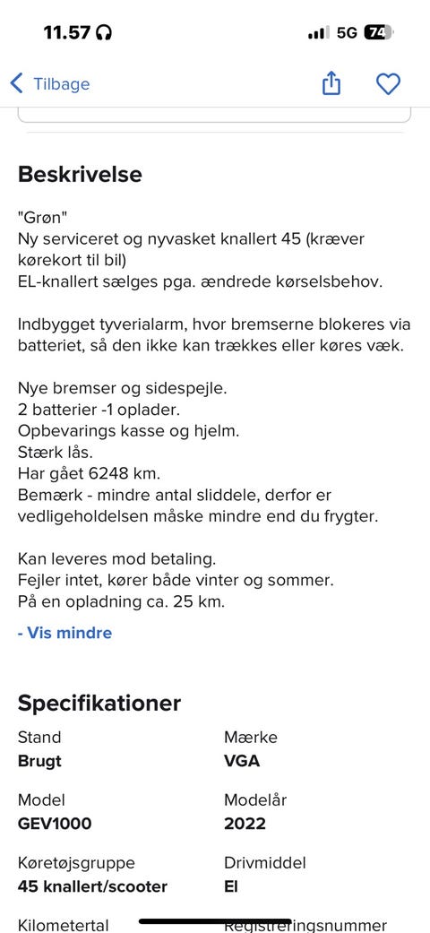 VGA Street-X EFI 45 km/t EURO 52025 ∙ 1.485 km ∙ Benzin7.799 kr.SilkeborgPrivat ∙ ServiceFøj til favoritter.