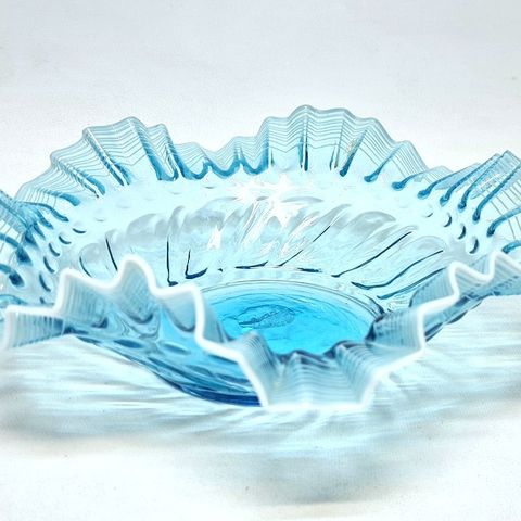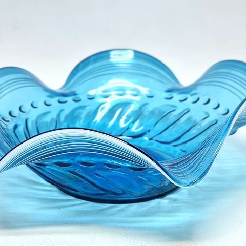 Den fineste visitkortskål i søblåt glas fra Fyens (Fyns) Glasværk, 1896