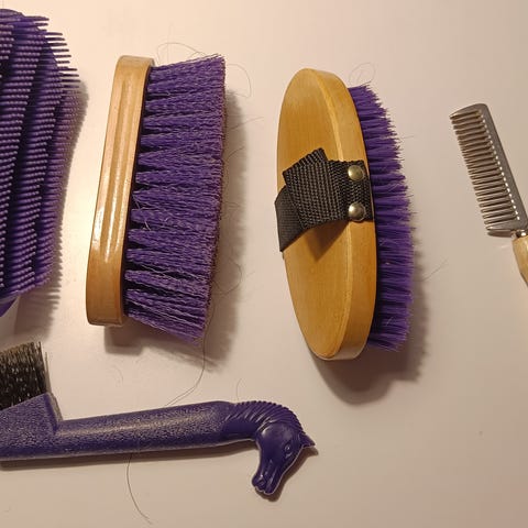Strilekasse med indhold og ridehandsker sælges - brugt med god stand.