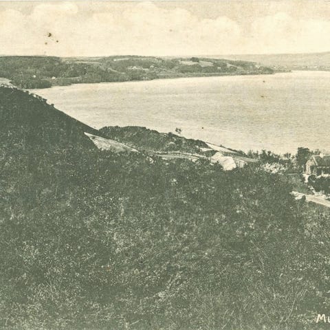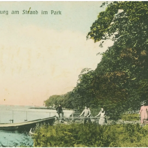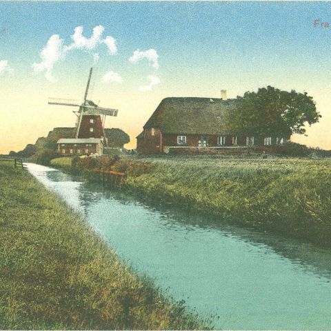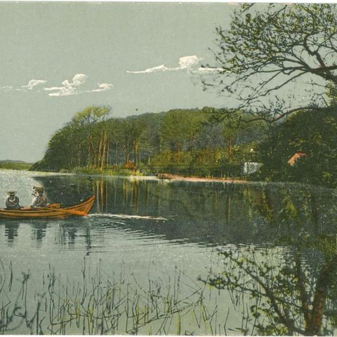 Postkort fra Kolding med måneskin på fjorden. Poststemplet 17.8.1908
