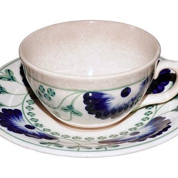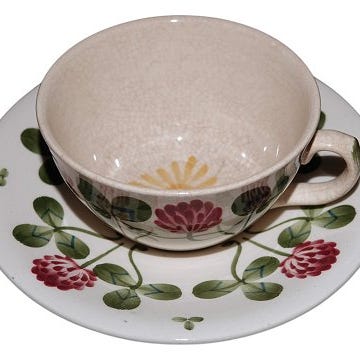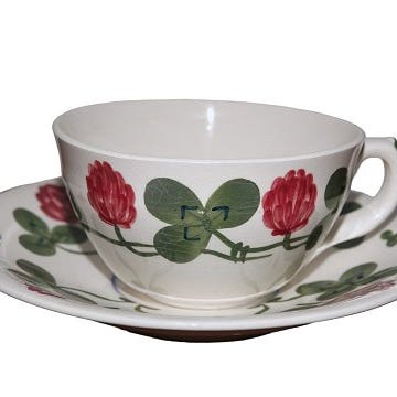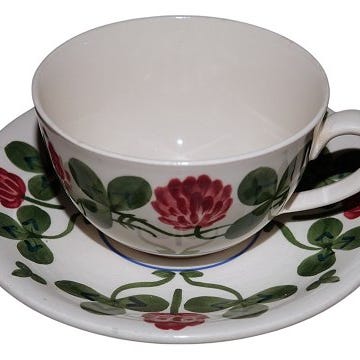 Ekstra stor tekop /morgenkop med underkop og sidetallerken, i helt usædvanlig flot stand!