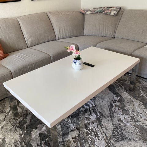 Katrine sofabord i hvid. Højtrykslaminat bordplade med børstet stålben.