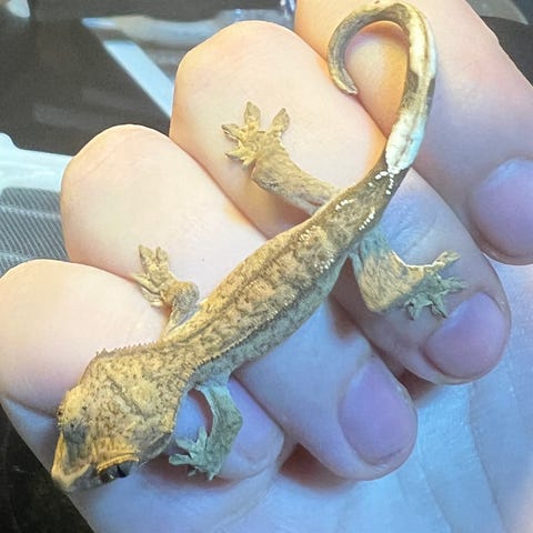 Små fine kronegekkoer, 2 klækket midt juli og 1 klækket midt august 2025.