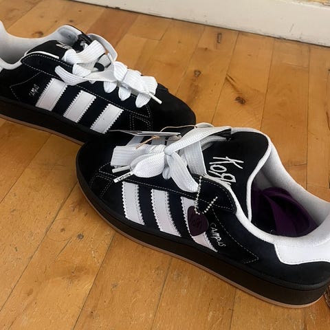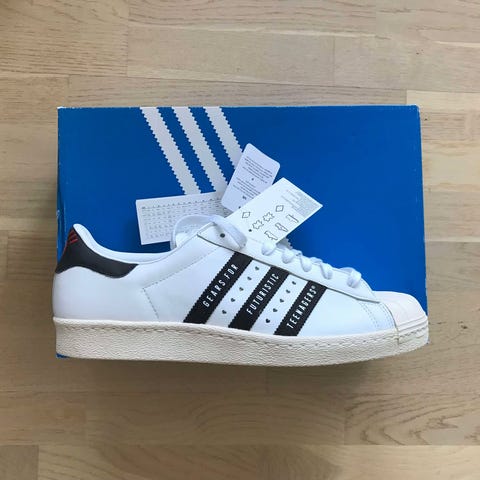 Ubrugte med mærker. Jeg har desværre ikke kassen længere. Skoene er i perfekt stand.