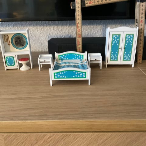 Lundby dukkehus soveværelse møbler af træ str 1:16