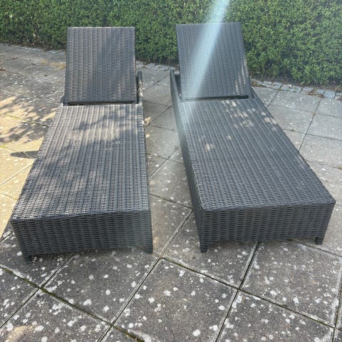 Sort børstet 6mm halvrund polyrattan, stel i aluminium og hynde i grå polyester.