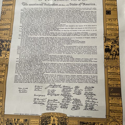 Kopi af den amerikanske uafhængighedserklæring fra 1976. Fejring af 200 året for den amerikanske uafhængighed.
