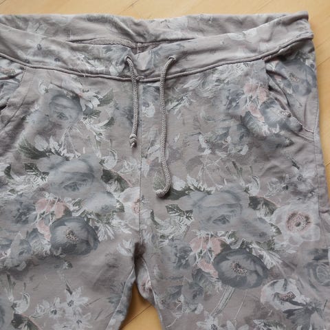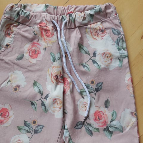 Bukser, leggings. Str S. Blå med blomster. Mrk. Philip Plein. Lette sommerbukser. Elastik i livet. Fra røgfrit hjem.