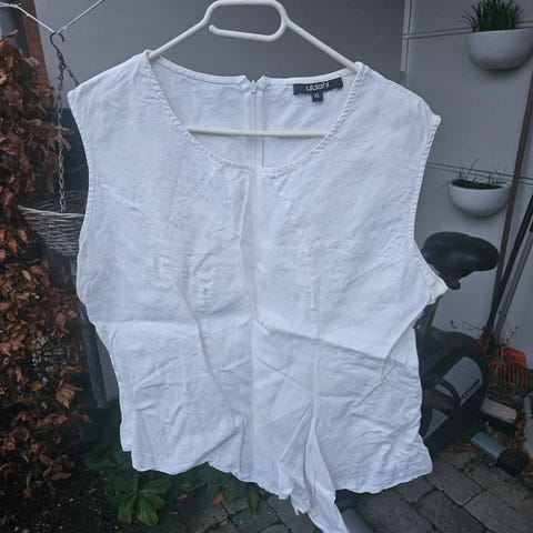 Hvid fest top/sommertop med glimmer palietter og ”flæser”