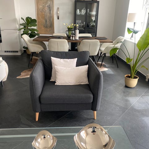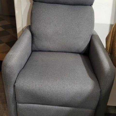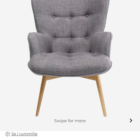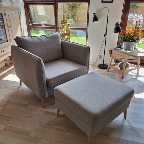 Rummelig lænestol - fejlvurderet til vores lille stue/soveværelse. Røg- og dyrefrit hjem. Samlet og klar til brug