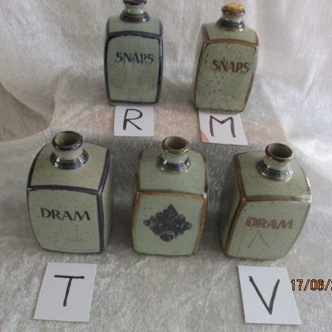 Fin lille Knapstrup dram flaske i keramik / stentøj.