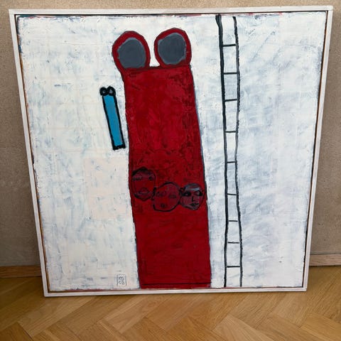 Maleri af Gabriella Kauffmann “Kvinder” fra 2001. Købt hos Galerie Leif Jensen jf. foto af faktura. Købt i 2001 for 12.000 kr. (103 x 103 inkl ramme)”