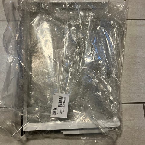 Tilbehør til vores køleskab, som vi var sikre på, ikke ville blive brugt, og derfor er de taget ud, inden køleskabet blev taget i brug.