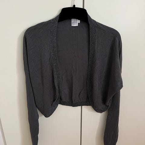 Cardigan i pæn brun/sort stribet mønster med metalknapper.