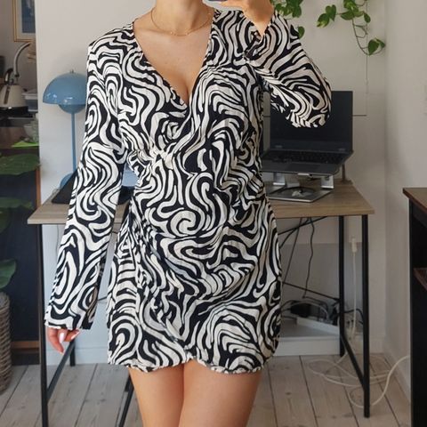 Flot skjorte kjole fra H&M i sort og brun zebra mønster