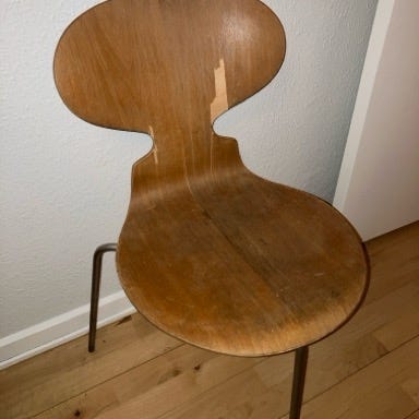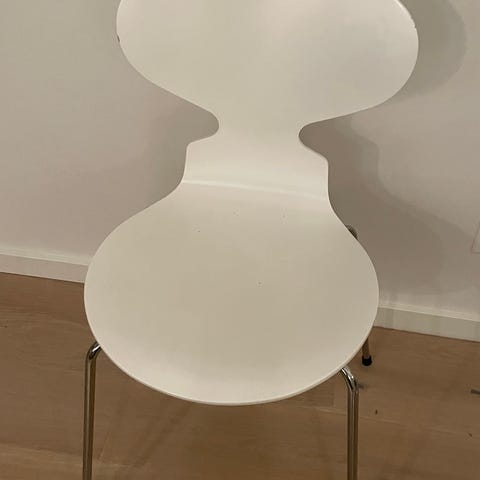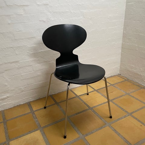 Sælger en original Arne Jacobsen Myrestol model 3100 med 3 ben i sortlakeret finer og kromstel fra Fritz Hansen.