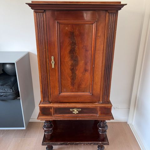 Flot tobaks- spiritusskab af massiv eg.