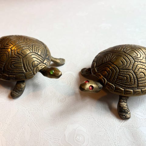 2 antikke messingskjolde , X
