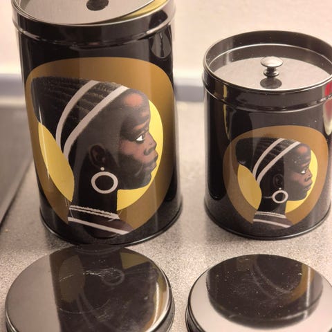 Kaffedåse med motiv af Cirkelkaffepigen, inkl. plastiklåg.