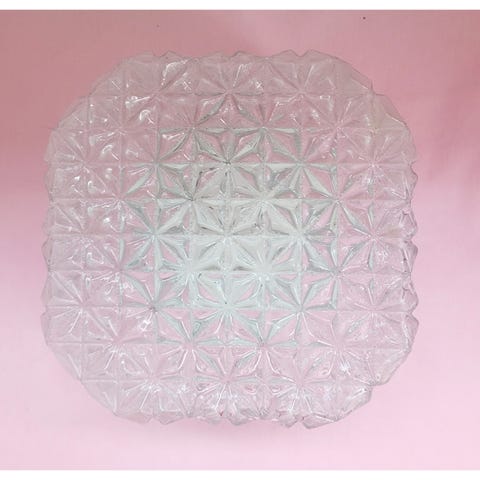 Skøn firkantet vintage glas plafond i taktil bobel mønster. Den er i klar glas og helt intakt. Metalbagstykket er sort, hvor det er synligt ud fra væggen.