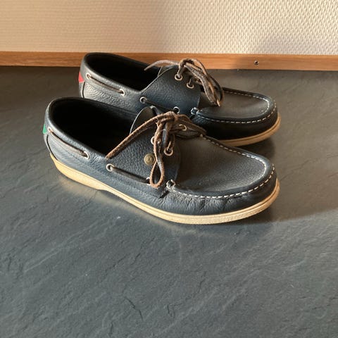 Daniel Hechter, sejlersko i marineblåt kalvelæder og lyse lædersnore