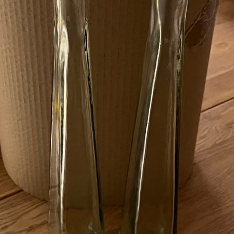En rigtig flot stående vase, med en virkelig flot fod 45 kr. og 2 liggende vaser med lang stilk og 2 med lidt kortere stilk. 30 kr. Pr. Stk.
