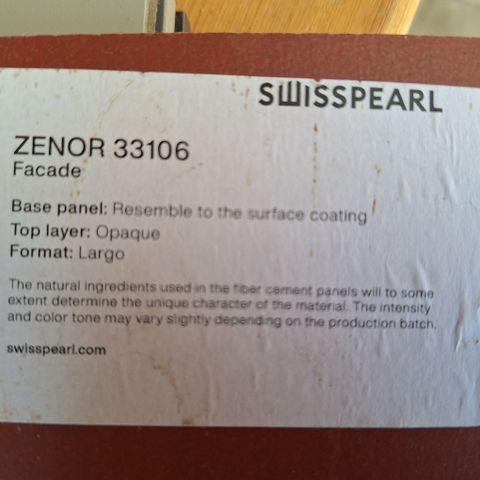 Swisspearl Zenor 33106 Facadeplader 8x1192x2500mm 4 stk.