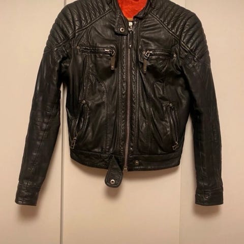 Stort set ubrugt læderjakke fra Meotine. Størrelsen på læderjakken er XS, men kan også passe en mindre S, hvis man er smal over skuldrene.