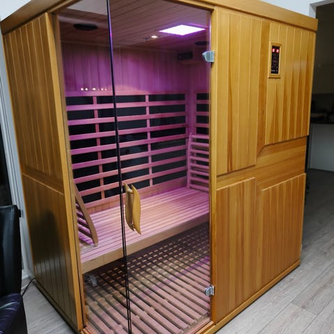 Det er en virkelig smuk og velduftende infrarød sauna med plads til tre personer.