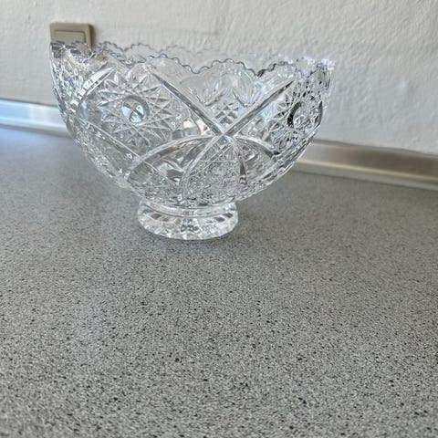 Glas, Krystal Ældre Lille Skål med Låg Pynt, Krystal :Måler 11cm X 8,5cm