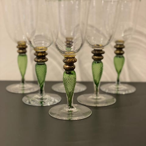 10 stk mundblæst glas. 5 stk vinglas og 5 stk champagneglas. Fejler intet.