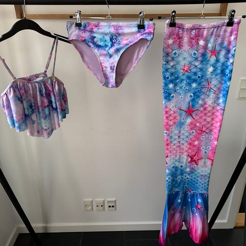 Søde havfrueshorts str. 6 år. Kan se på farver de er brugte.